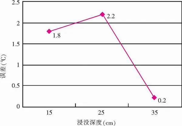 將熱電偶浸入25℃恒溫油槽中不同深度,實驗結果如圖1所示